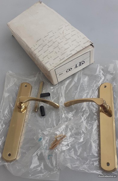 Puxadores de porta interior em latão polido, novos na embalagem.