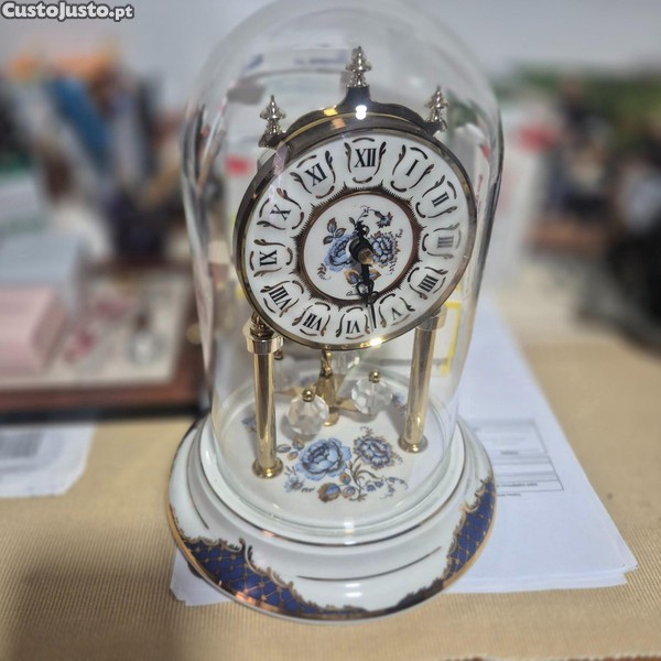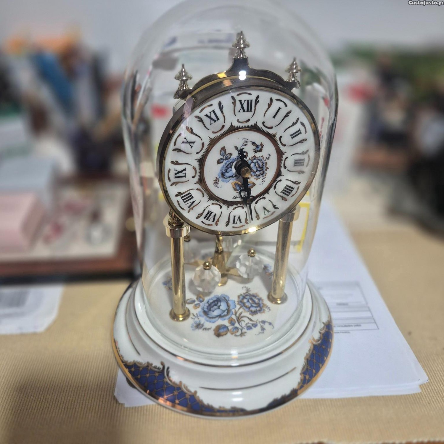 Relógio de mesa vintage com cúpula de vidro W. Germany