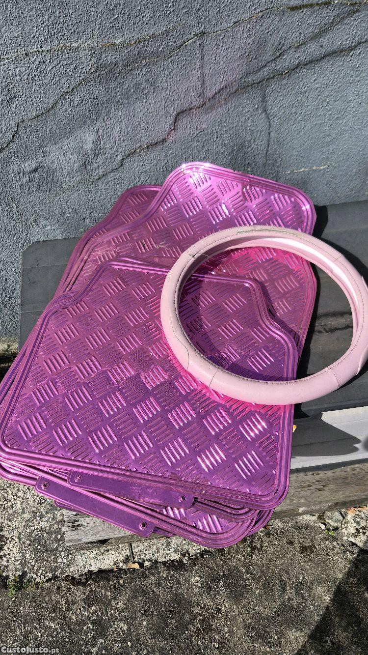 Tapetes universais rosas estao como novos mais capa po volante rosa.