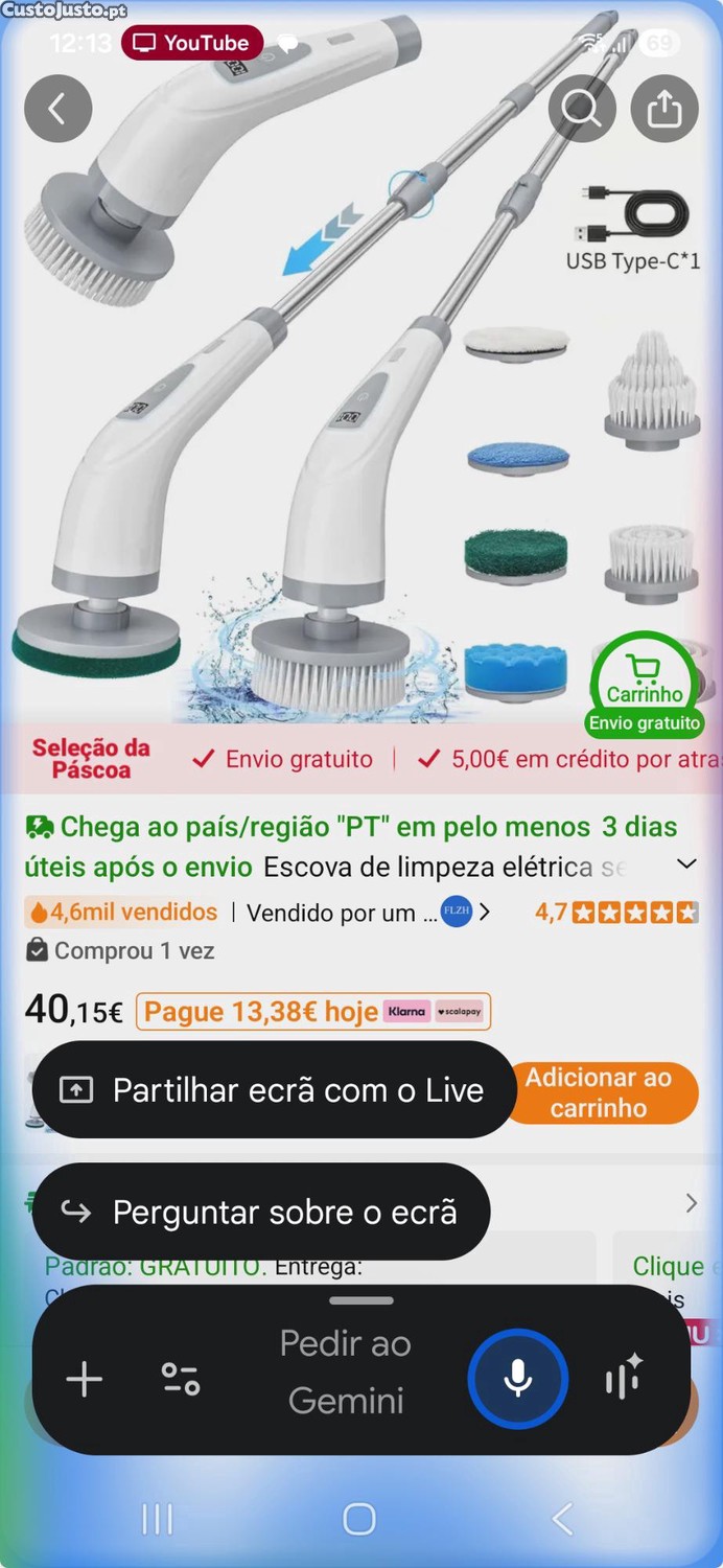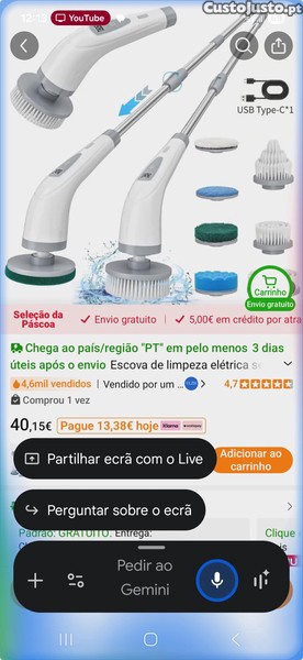 Preço: 20 €Escova de limpeza eletrica sem fio 2 velocidades e 7 cabeças de escova,