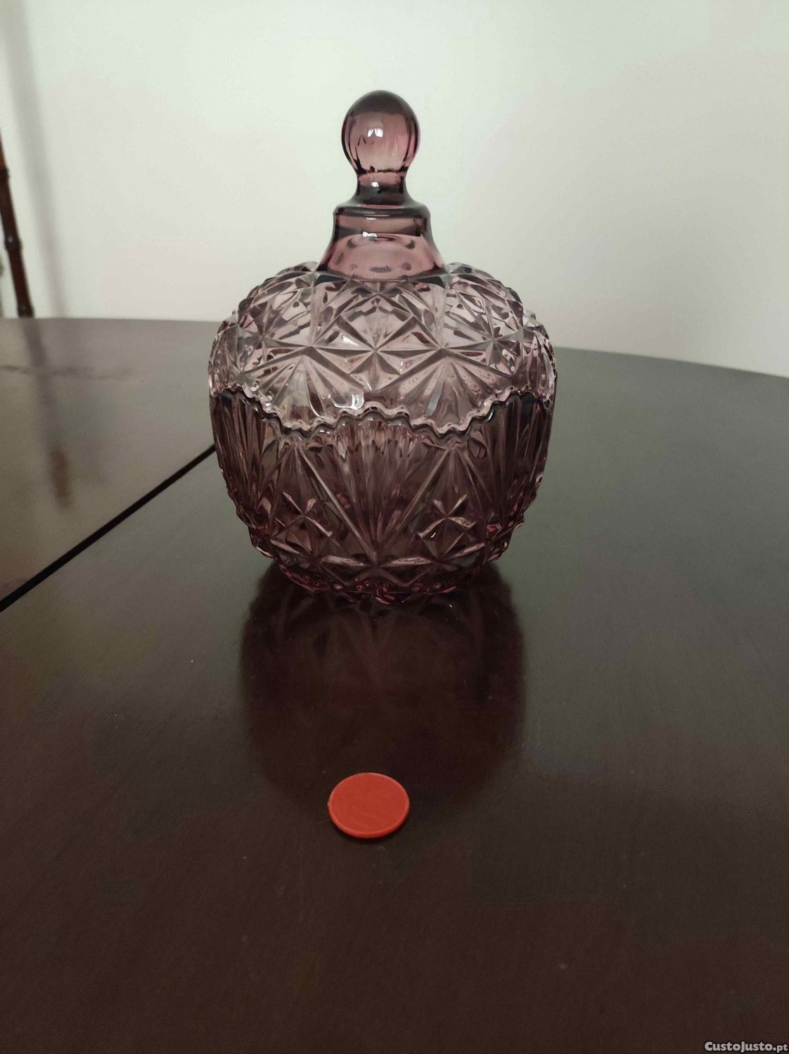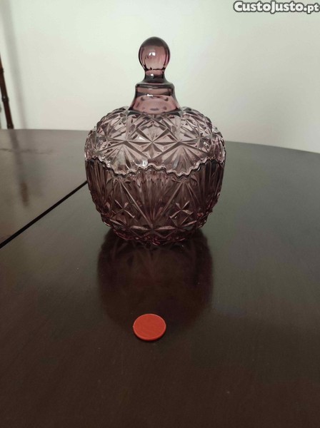 Preço: 24 €Bomboniere / caixa decorativa em vidro rosa com tampa (Funchal)