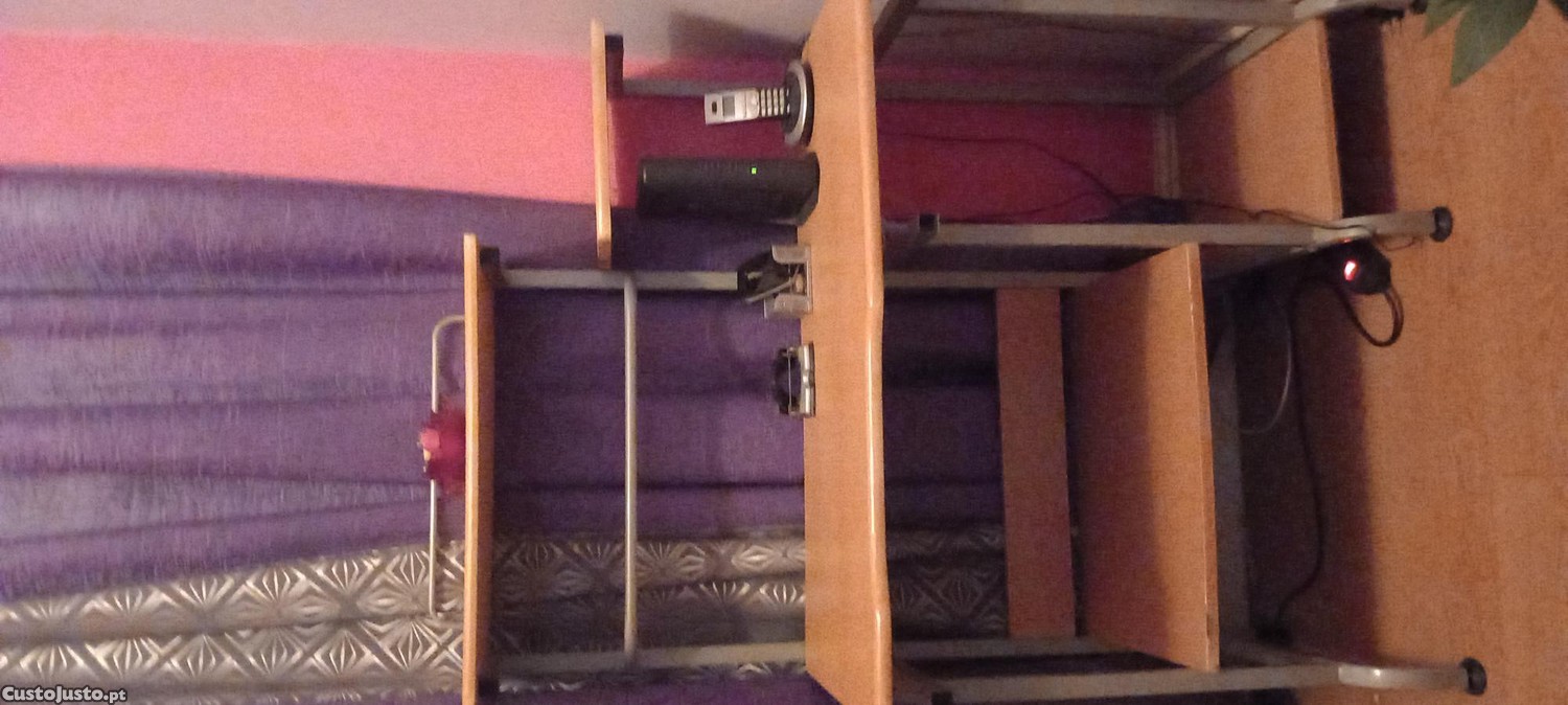Vendo secretária em madeira com prateleiras para computador em bom estado