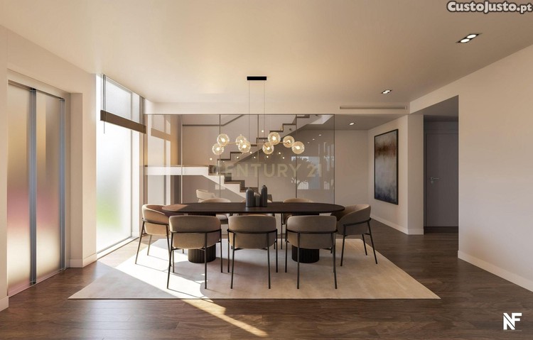 A casa dispõe de 3 quartos, 4 casas de banho e uma variedade de espaços bem distribuídos, incluindo uma sala de estar ampla, uma cozinha com despensa, e uma área de refeições que se abre para um pátio encantador. Os acabamentos de alta qualidade, garantem um ambiente sofisticado, enquanto a piscina e o solário proporcionam momentos de lazer ao ar livre.