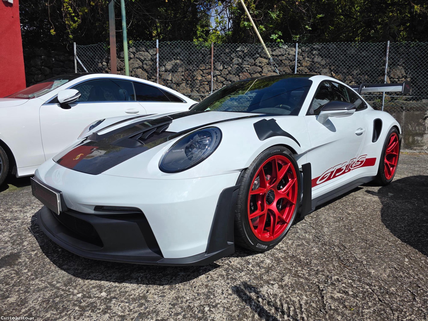 Este Porsche 911 GT3 RS é uma das versões mais radicais já feitas pela Porsche e é praticamente um carro de corrida homologado para estrada criado com foco total em desempenho em pista. Vem equipado com motor 4.0L boxer de 6 cilindros atmosférico com 525 cavalos de potencia e uma caixa automática PDK de 7 velocidades com patilhas no volante. Viatura muito bem equipada de fabrica com destaques para Pacote Weissach Pacote Weissach roll cage (gaiola de segurança) Pacote Club Sport Pelicula de proteção frontal (Protective Foil) Logótipos do Pacote Accent - Vermelho Pyro Luzes de cortesia das portas em LED com logótipo 'PORSCHE' Logótipo lateral 'Weissach RS' nas extremidades da asa traseira em Vermelho Pyro Roll cage em Fibra de Carbono (CFRP) Sistema de elevação do eixo dianteiro (Front axle lift) Travões de cerâmica Porsche (PCCB) com pinças em Preto (brilhante) Depósito de combustível de 90 litros Jantes pintadas em Vermelho Pyro Jantes forjadas de Magnésio leve GT3 RS de 20/21 polegadas Saídas de ar em pele com lamelas em pele - Vermelho Guards Chave do veículo personalizada em pele com bolsa em pele Cintos de segurança em Vermelho Guards Mostrador do conta-rotações em Vermelho Guards Revestimento da coluna de direção em pele Pacote alargado Race-Tex - Vermelho Guards Mostrador do cronómetro Sport Chrono em Vermelho Guards Puxadores de abertura das portas em preto (laços) Pedais e apoio de pés em Alumínio Soleiras das portas personalizadas em Carbono mate iluminadas Palas de sol em Race-Tex Acabamentos da saída dos cintos em Race-Tex Tampa do compartimento de arrumação em Race-Tex com brasão Porsche Tapetes em carbono com rebordos em pele - Vermelho Guards Pasta de documentos do veículo personalizada em pele Sistema de som Surround BOSE® Sistema de rastreamento de veículos Porsche Plus (PVTS Plus) Faróis principais LED Matrix escurecidos incluindo Porsche Dynamic Light System Plus (PDLS Plus) Farolins traseiros Exclusive Design Espelhos retrovisores interiores e exteriores com anti-encandeamento automático e sensor de chuva integrado Vidros leves e com isolamento acústico incluindo vidros fumados (privacy glass) Reconhecimento de sinais de trânsito HomeLink® (abertura de garagem) ParkAssist (traseiro) incluindo câmara de marcha-atrás Preparação para Porsche Dashcam Pacote de design de luzes (Light design package) Possibilidade de retoma mesmo com divida. Garantia de fabrica até Novembro de 2027. Financiamento desde 5.187,96eur euros por mês. Simulação com 0% de entrada para 120 meses Taeg 8,5%. Nota: A informação disponibilizada ainda que precisa não dispensa a sua confirmação nem poderá ser considerada vinculativa.