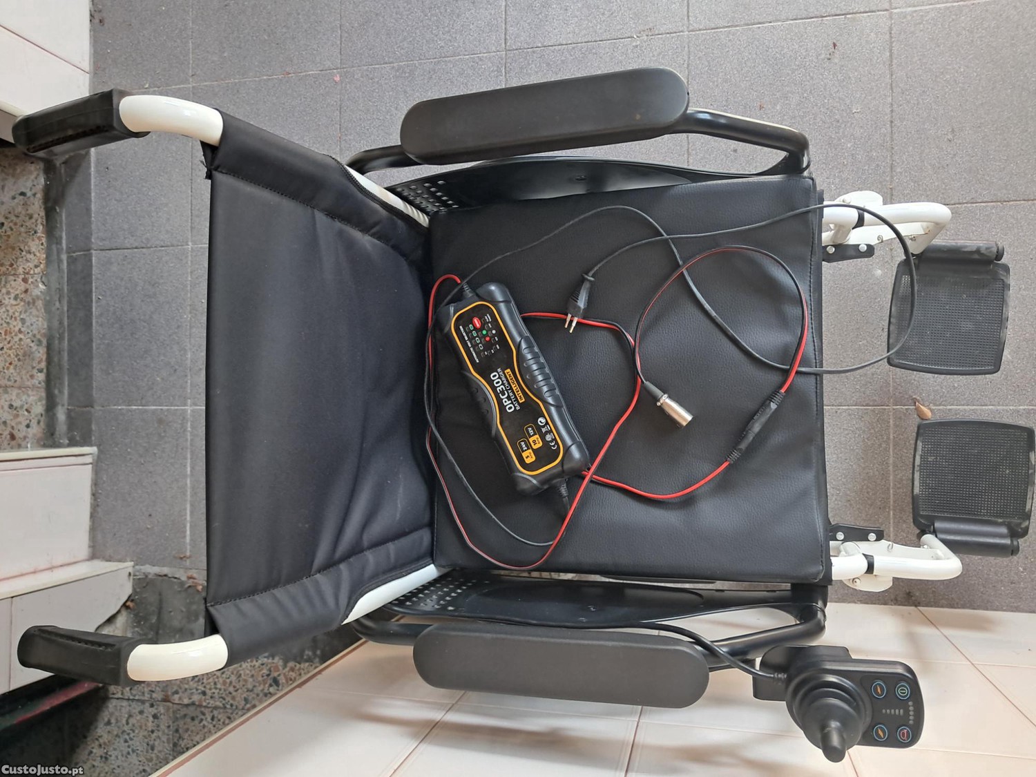 Cesto de suporte das baterias é destacável permitindo o fecho da cadeira