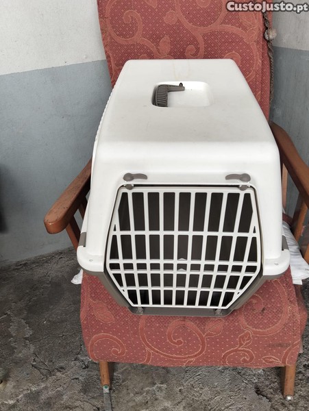 Cesta de transportar gatos feita em plástico.