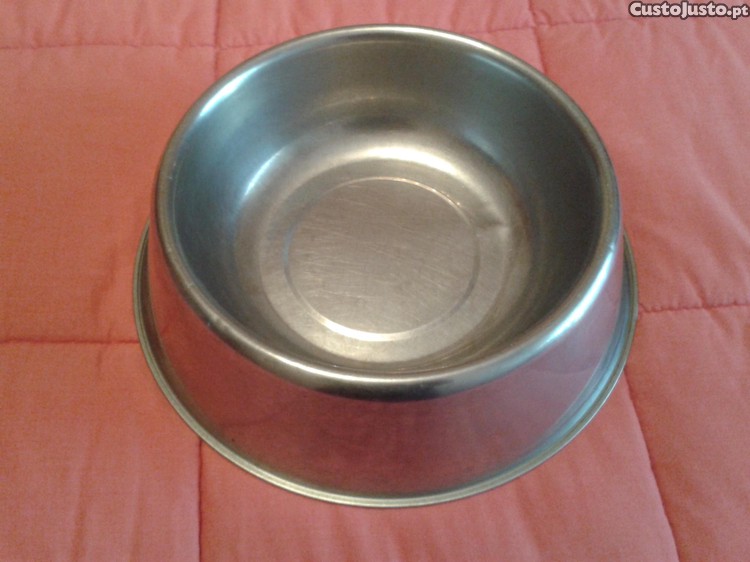 TAÇA ou comedouro ou tijela ou prato, para comida ou água de animais aço inox muito estável medidas/ diâmetro : superior 25 cms / inferior 31 cms peso 700 grs.