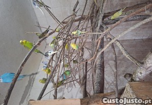 Periquitos novos criados em viveiro comunitário