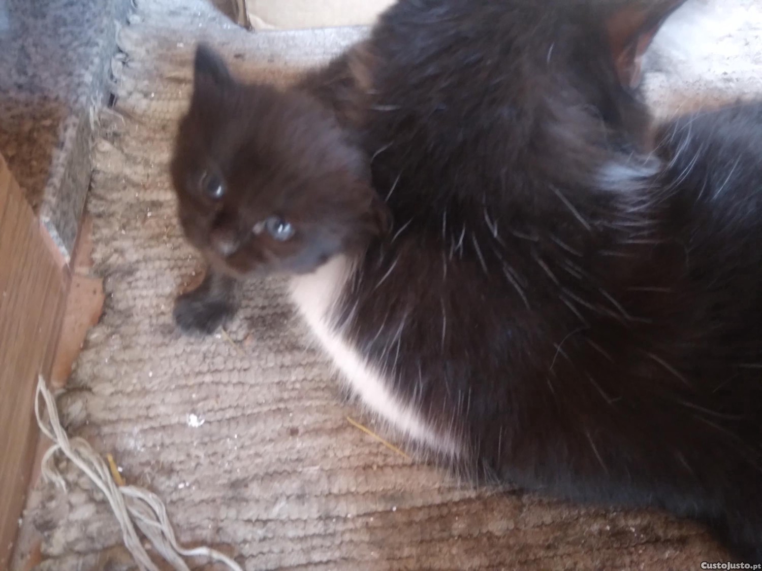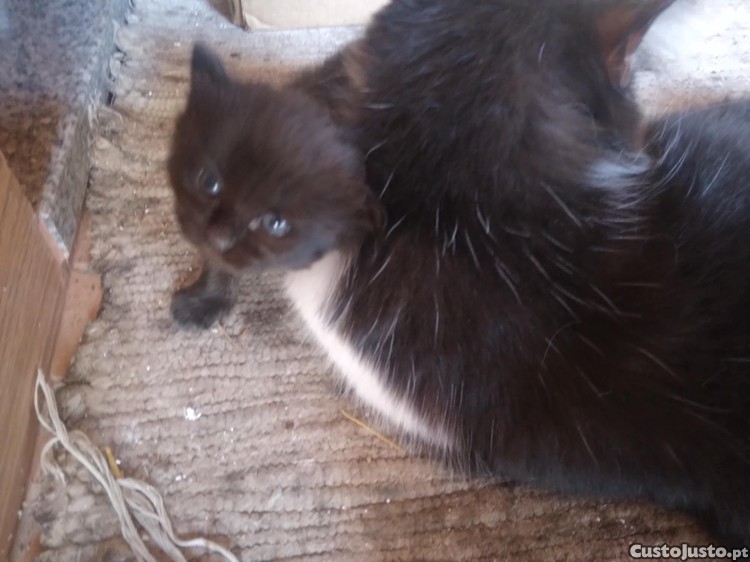 Dou gatinho preto. Ainda está com a mãe e tem 1 mês.