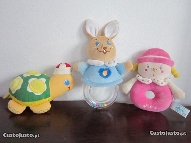 vendo bonecos da chicco para bebe com gizos. 6EUR cada. preço minimo.estão novos. O rosa já foi vendido.
