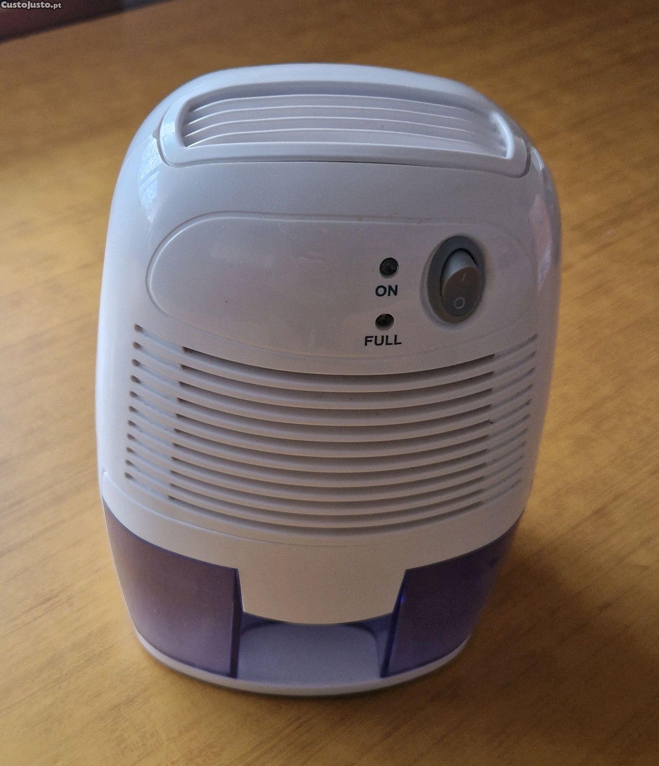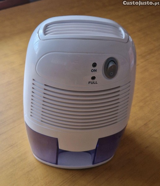 Pequeno desumidificador portátil e compacto contra mofo e humidade, bastante silencioso.