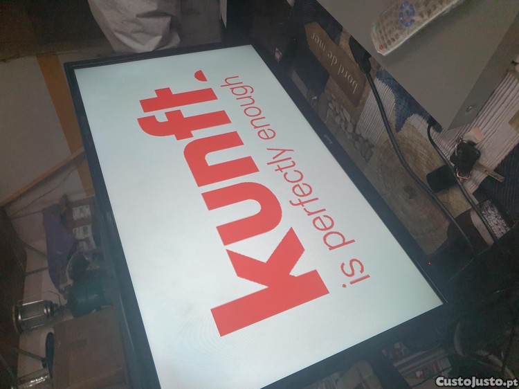 Televisor Kunft de 32 polegadas com resolução HD. Excelente para desfrutar de filmes e séries com qualidade de imagem nítida. com defeito logo de ligar dura 1 hora e vesse franza verti cales, pantalha sim riscos . conforme imagens. Tem comando.