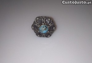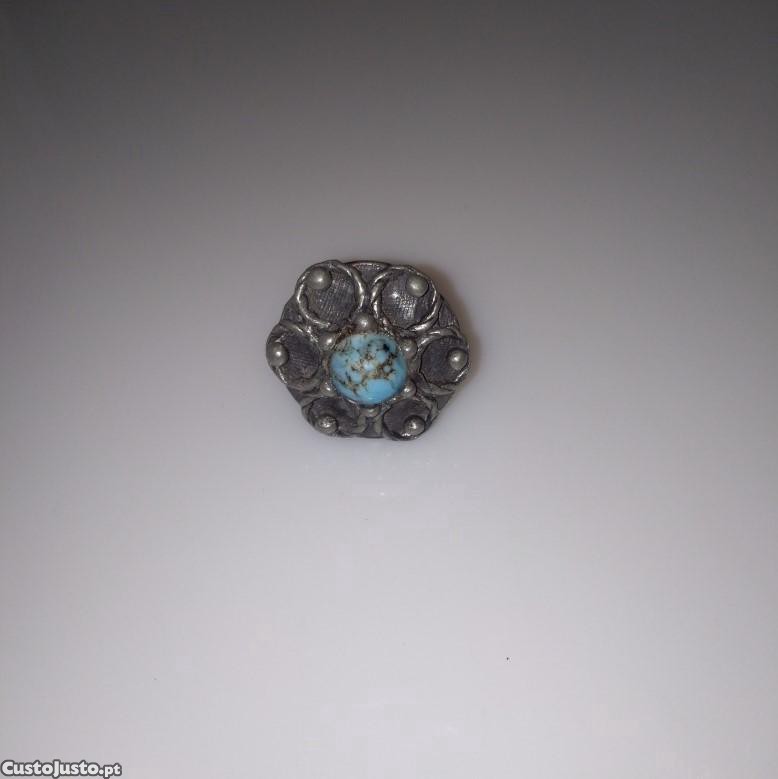 Anel em estanho e metal com turquesa