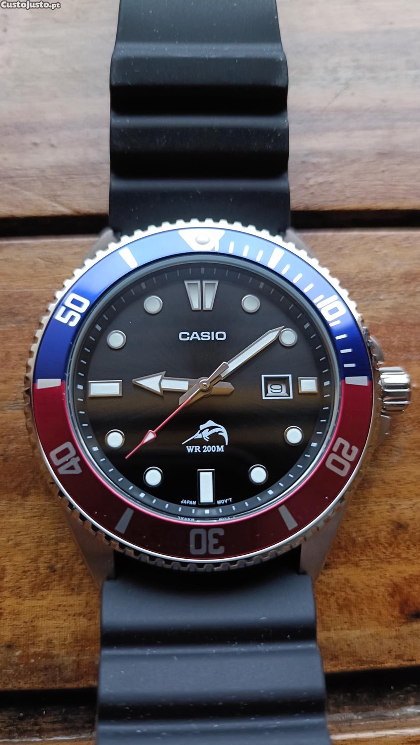 Preço: 99 €Casio Duro MDV-106B-1A2V Marlim Pepsi, WR 200M, Coroa de Rosca