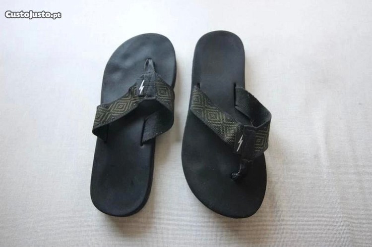 Preço: 15 €Chinelos pretos da Lightning Bolt Vintage