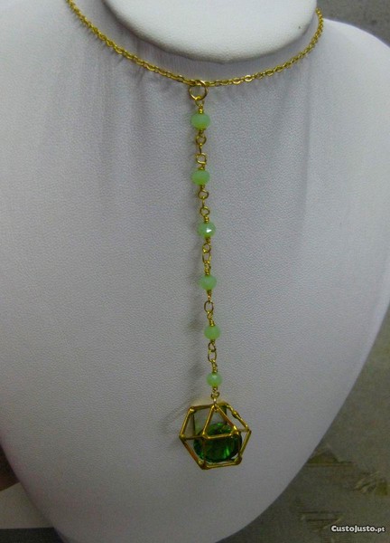 Preço: 3 €Colar Aço c/ Pingente de Cristal e Contas Natural Verde NOVO