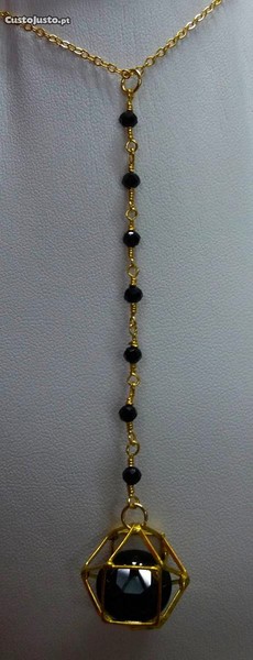 Preço: 3 €Colar Aço c/ Pingente de Cristal e Contas Natural Preta NOVO