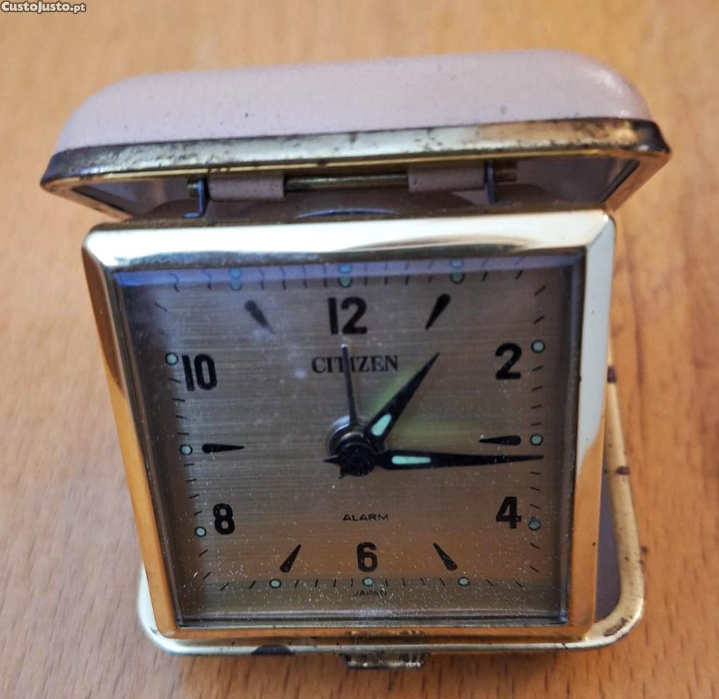 Relógio despertador vintage, Citizen a corda com estojo