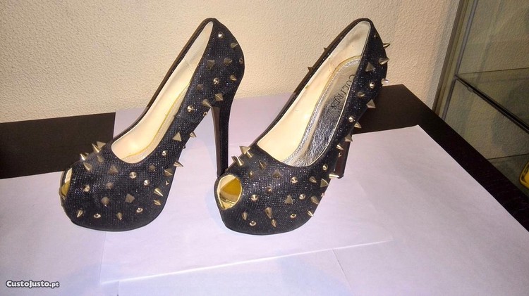 -sapatos pretos de senhora com tachas (tamanho-38)
