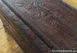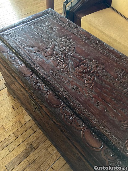 Vendo magnífica arca antiga (baú) em madeira de cânfora maciça, totalmente trabalhada à mão com entalhes profundos em relevo. Uma peça de mobiliário oriental clássica, muito procurada pela sua beleza e funcionalidade.