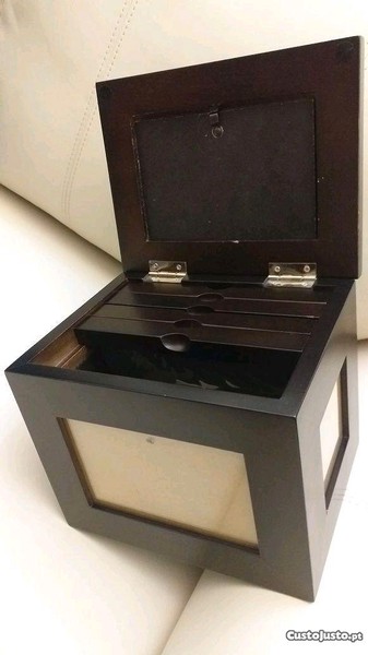 em madeira lacada castanho escuro medidas de cima tampa 21×16cm