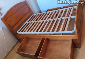 cama com medidas exteriores 193 x 129. para colchão até 185 x 130. tem 4 gavetões que permitem boa arrumação.