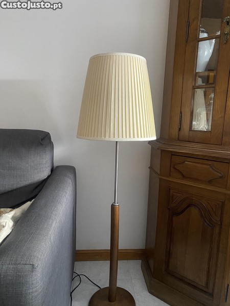 Preço: 20 €Candeeiro de Pé em Madeira com Abajur Bege