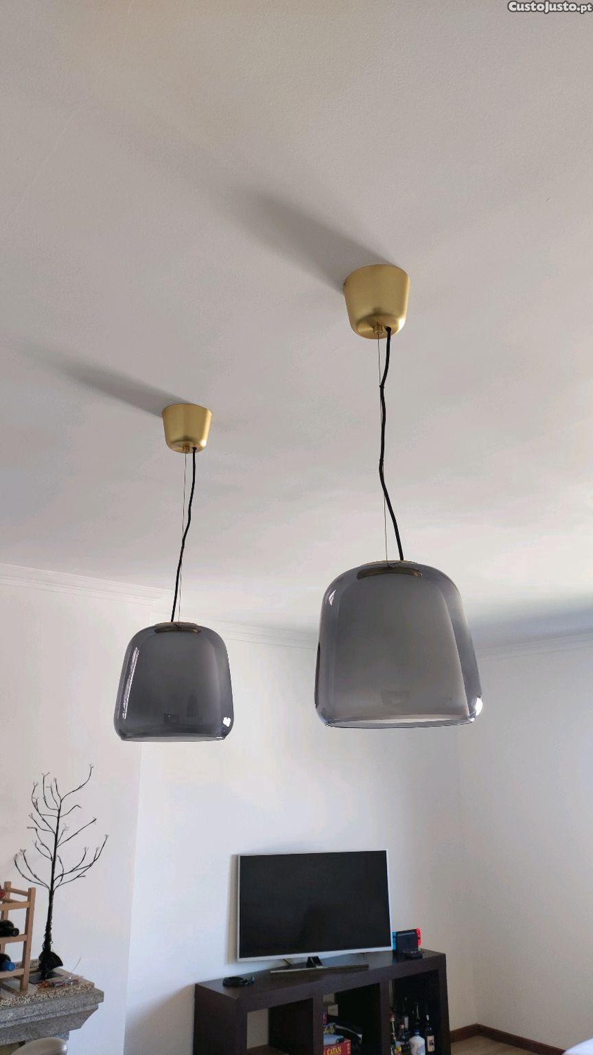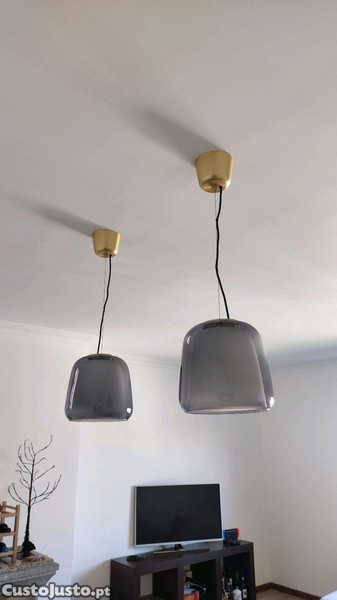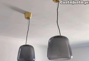 Candeeiro suspenso em vidro fumado IKEA EVEDAL. Peça de gama de elevada qualidade, especialidade de design do IKEA. Não se encontra no IKEA Portugal, é importado.