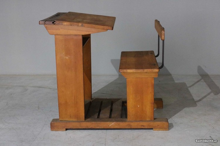 Carteira escolar da 1. metade do Século XX, em pinho e ferro.