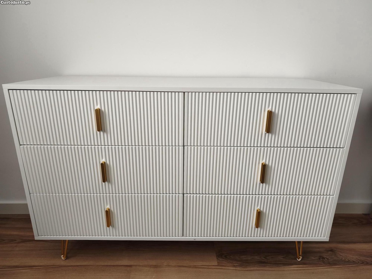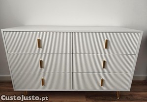 Cômoda com 6 gavetas - 120 x 44 x 77 cm - Aglomerado e pés em metal dourado - Branco