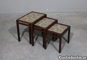 Conjunto de 3 mesinhas dinamarquesas em pau santo e azulejo