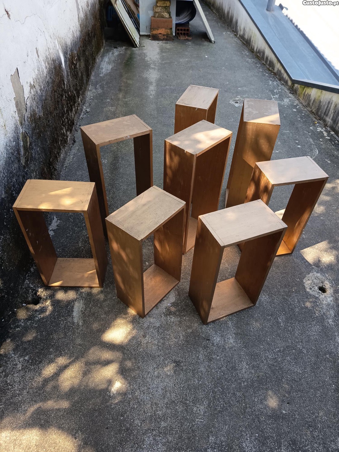 Conjunto de 8 caixas ocas pintadas a bronze.