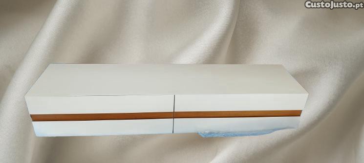 Consola branca e castanha, com linhas simples e elegantes, ideal para complementar a decoração da sua sala de estar.