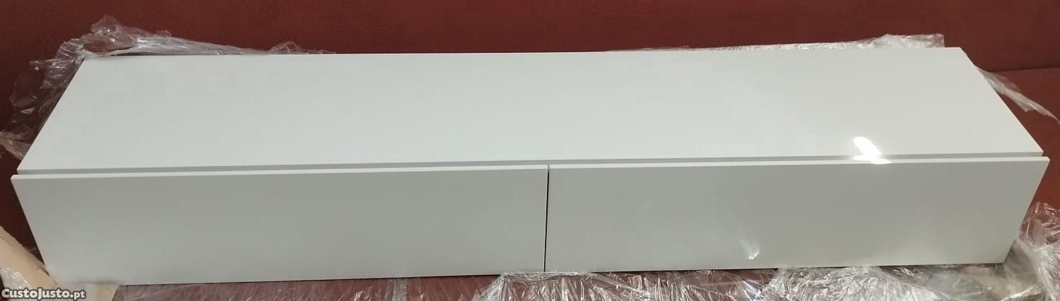 Consola de madeira branca elegante e moderna. Com dois compartimentos espaçosos, oferece amplo espaço de arrumação. Peça de design simples e minimalista que se adapta facilmente a qualquer estilo de decoração.