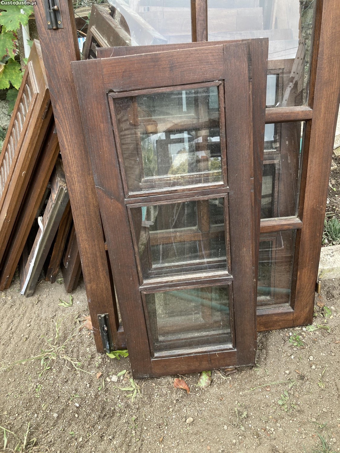 Preço: 500 €Janelas e porta da madeira antigas /portadas com caixilhos