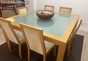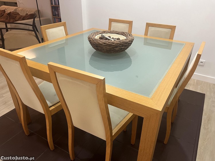 Preço: 200 €Mesa (140x140cm) sala de jantar com tampo de vidro fosco