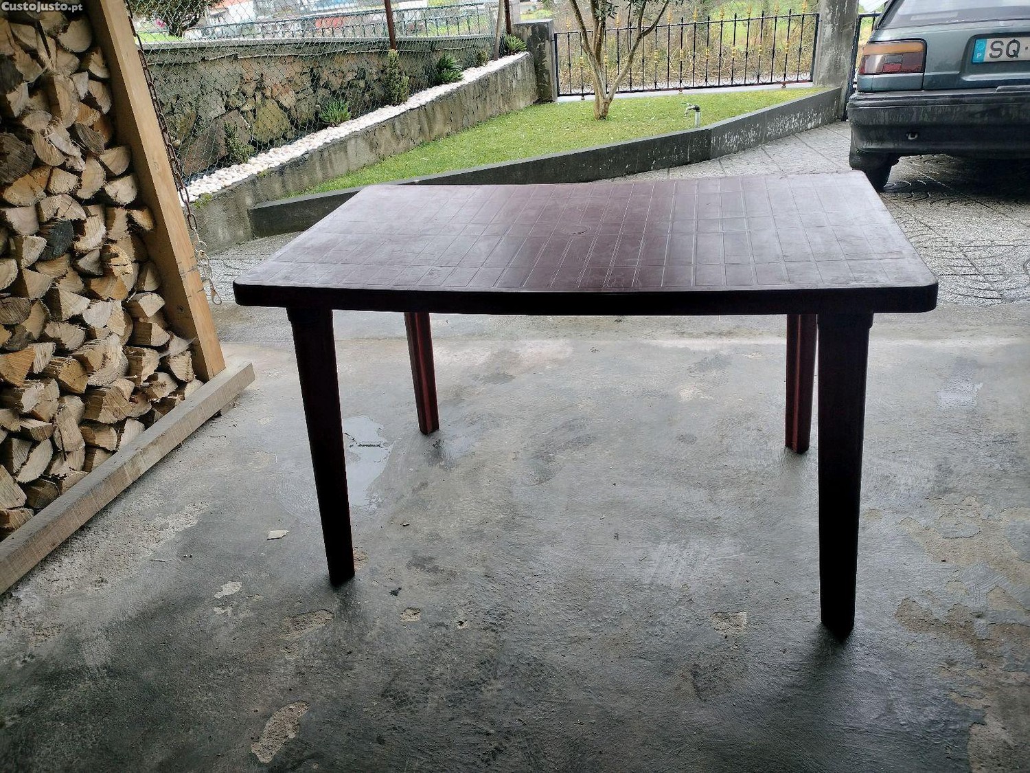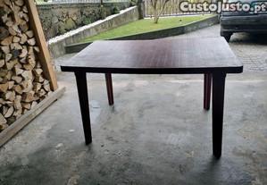 Mesa de plástico vermelha, resistente e prática, em excelente estado.