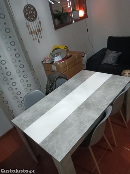 Vendo mesa muito bonita com tampo estilo cor de mármore e uma faixa em branco no meio,no qual dá para virar e tem em preto,da para pôr de cores diferentes,esta praticamente nova,