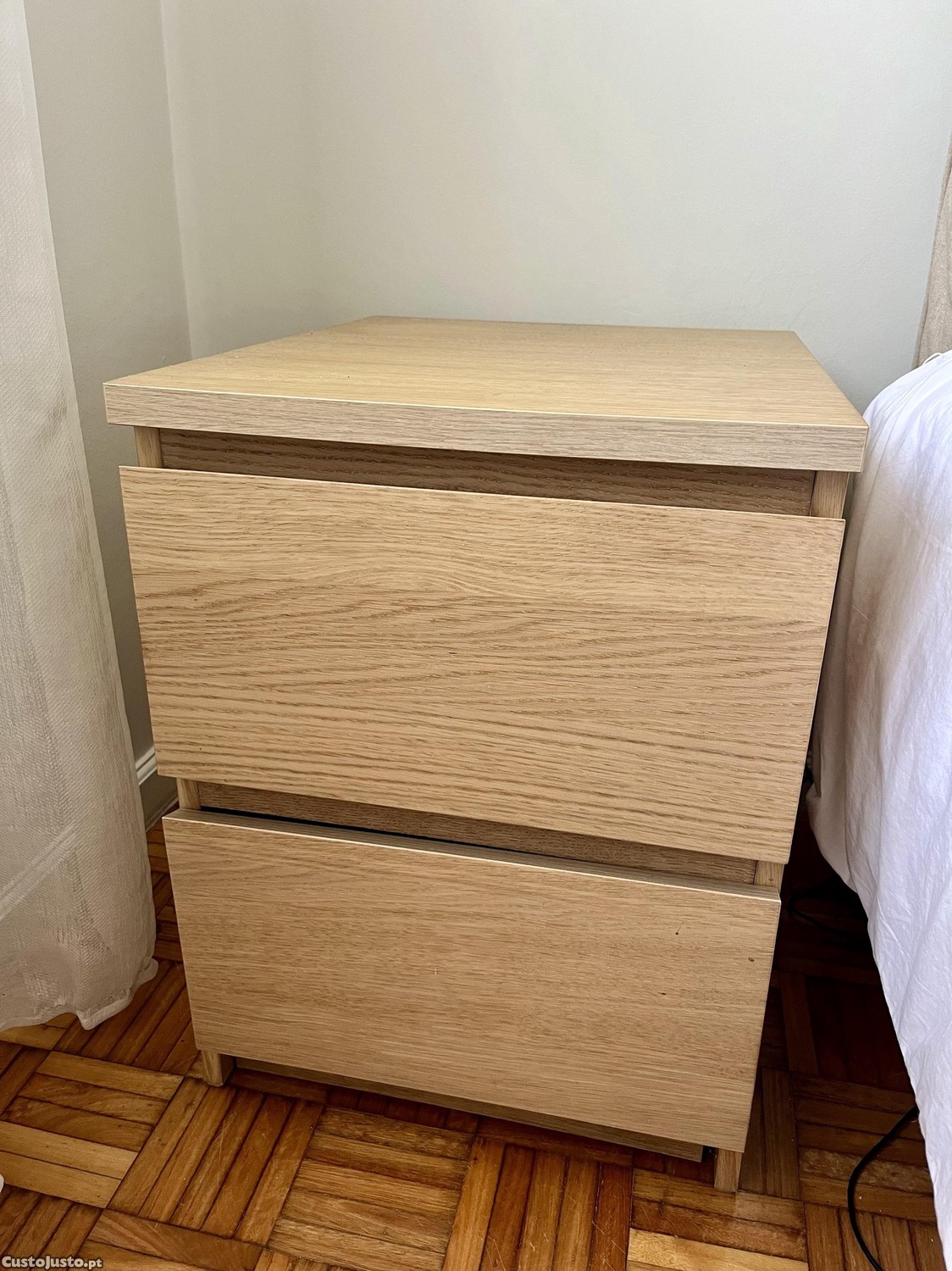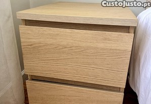 Mesas de cabeceira c/2 gavetas MALM IKEA, chapa de carvalho c/velatura branca