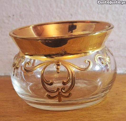 Pequena tigela em vidro com dourados