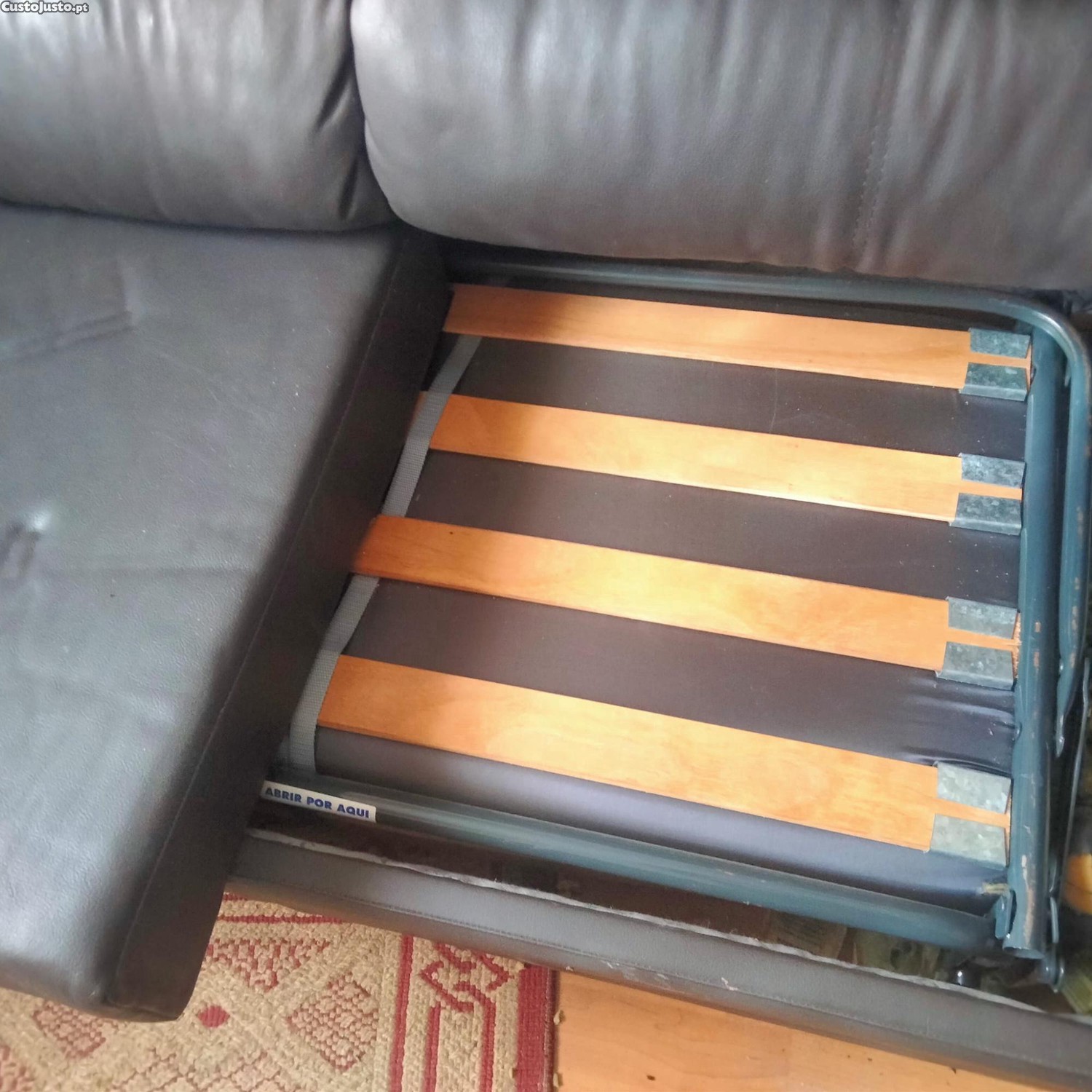 Sofá cama em pele e duas arcas em madeira, para desocupar