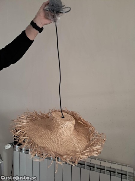 Preço: 20 €Candeeiro de teto suspenso, em palha, efeito chapéu de palha