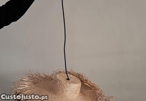 Candeeiro de teto suspenso, em palha, efeito chapéu de palha