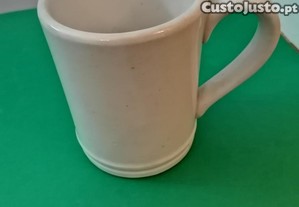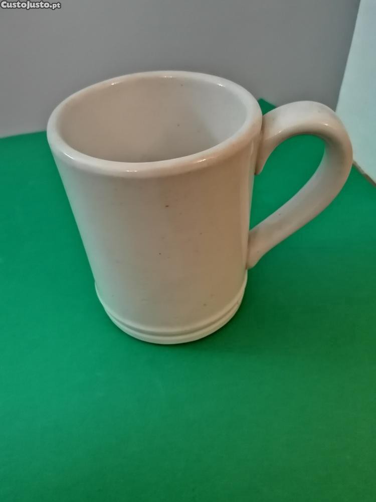 Caneca em porcelana Artibus, branca, para vinho, de 1/2Litro, com a altura de 13cm, o comprimento da asa ao extremo de 15cm, e o diâmetro da base de 10cm.