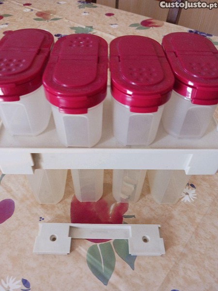 Conjunto de 8 recipientes para epices com suporte para parede ou armário,novo da marca Tupperware