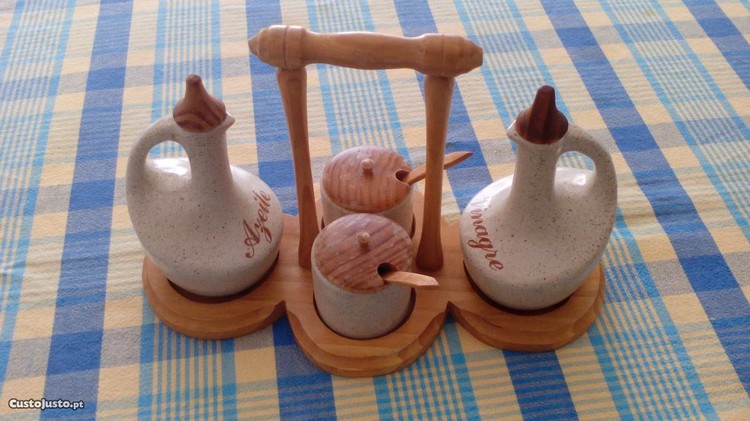 Vendo Galheteiro em Grés e Madeira em bom estado.