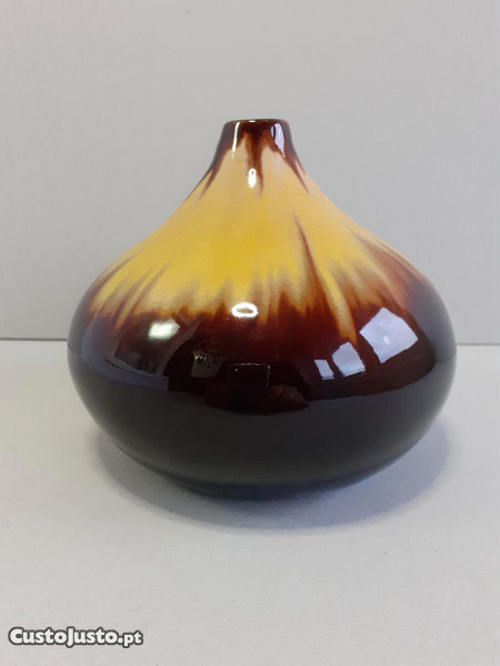 Descrição / Decoração - Forma tipo balão/ lágrima em cerâmica com vidrados escorridos em cores de castanhos e amarelos .