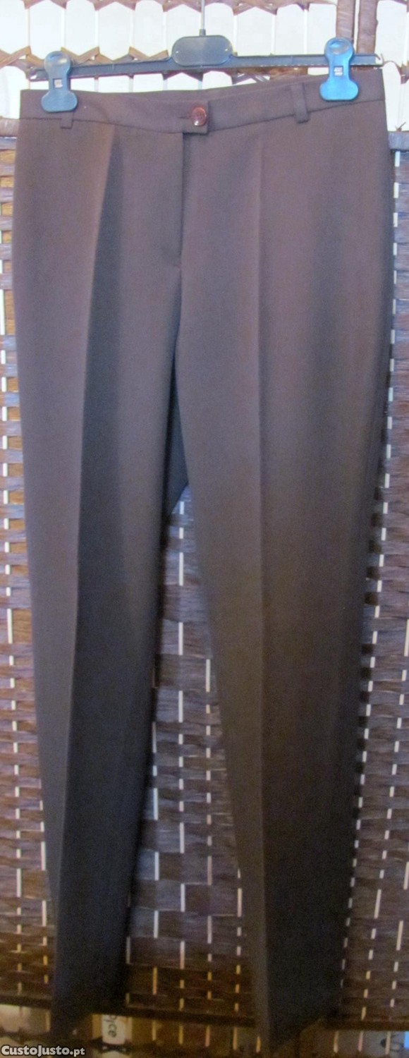 Calças castanhas em estilo clássico, perfeitas para um look elegante e sofisticado.