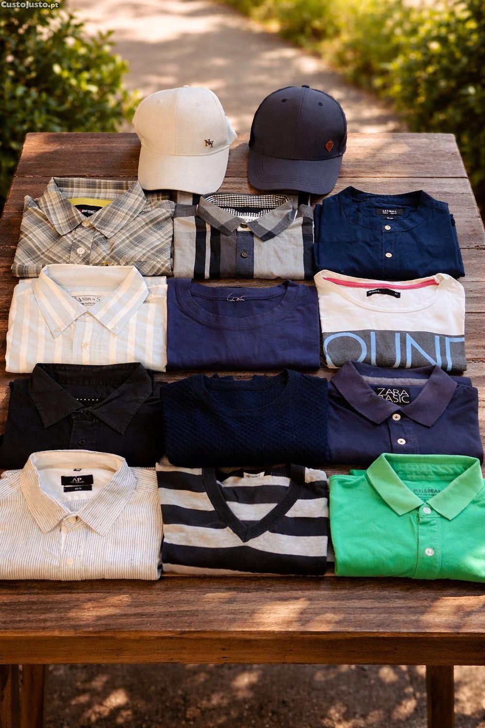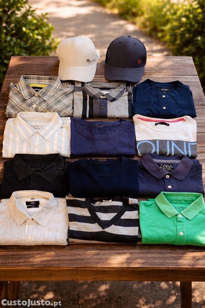 Lote de roupa homem tamanho M 13 peças variadas Pull & Bear, Zara, Sisley, Berg, Lefties, Primark e boné Tiffosi