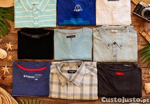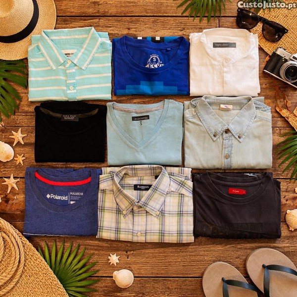 Lote composto por 9 peças de roupa de homem em tamanho S, ideal para uso próprio, revenda ou renovação de guarda-roupa. Inclui camisola, t-shirts e camisas de manga curta e manga comprida, com estilos casuais e urbanos para o dia a dia. Marcas incluídas: Tissaia, FSBN, Cedar Wood State, Angelo Litrico, Zara, In Extenso, MO, Barreds e Pull & Bear. Conjunto versátil e equilibrado, com boa variedade de peças para utilização em diferentes ocasiões. Venda apenas em conjunto.
